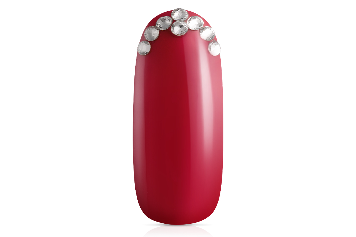Steinchen in feuchtes Gel einlegen, 2 Minuten aushärten, anschließend versiegeln.