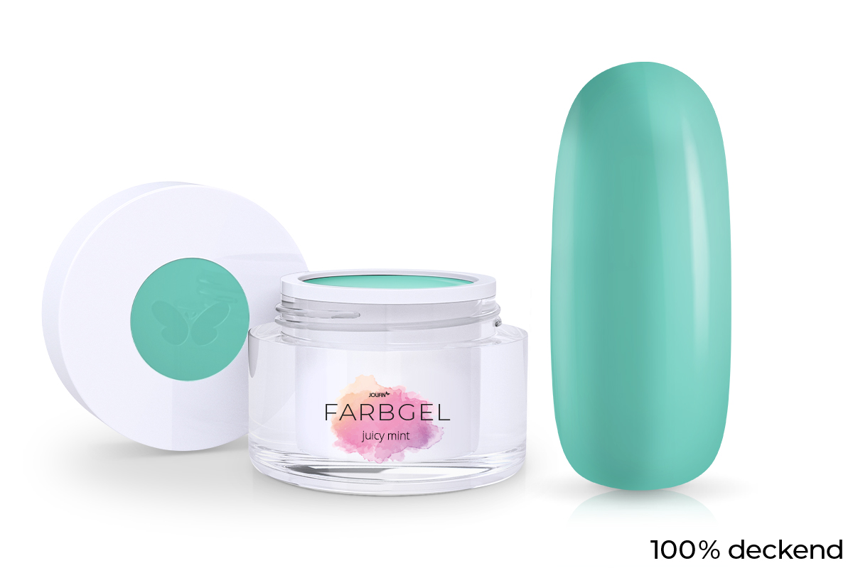 Jolifin Farbgel juicy mint 5ml zaubert Ihnen ein brillant schönes Farbergebnis. Das mittelviskose Gel ist besonders leicht zu verarbeiten und somit ideal für Fullcover, French-Spitzen oder Nailart-Verzierungen. Bereits in der ersten Schicht deckt das Farbgel auffallend gut. Für ein stärkeres Farbergebnis kann es auch in weiteren Schichten aufgetragen werden. Der Auftrag gelingt mit allen gängigen Pinseln, sowie French-Ball Pinseln hervorragend. Das Farbgel muss für ein langanhaltend strahlendes Ergebnis versiegelt werden.