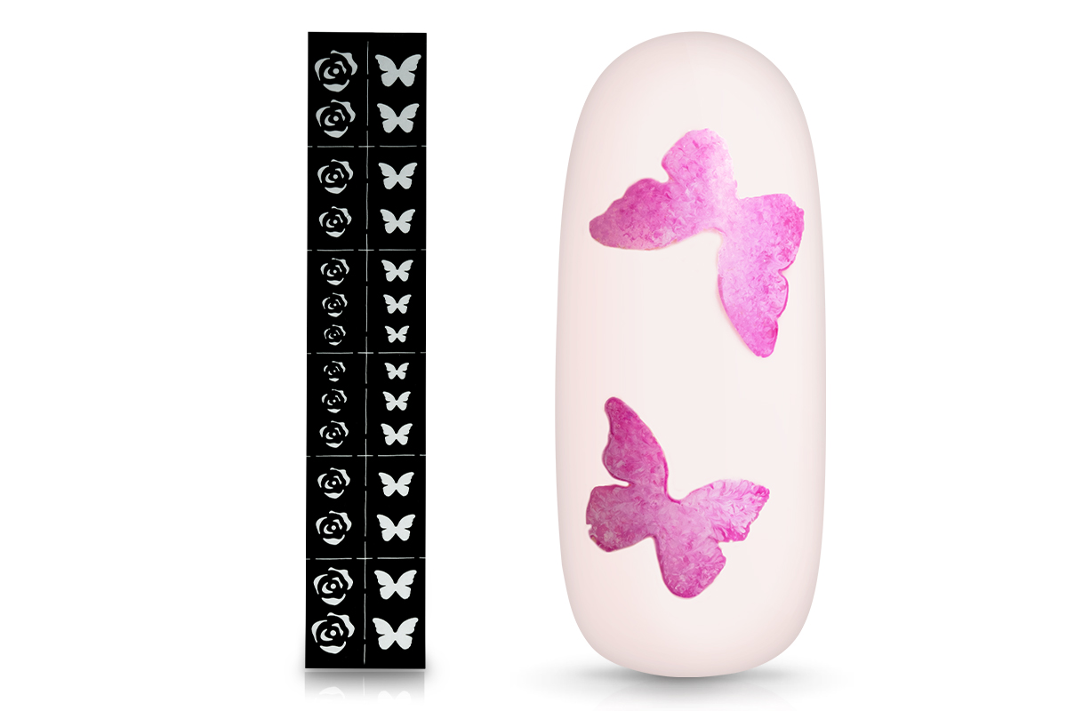 Jolifin LAVENI Airbrush- und Nagellackschablone Nr. 41 zaubert schnell und einfach verblüffende Verzierungen auf das Nageldesign. Dabei ist es Ihnen selbst überlassen ob Sie diese mit Stamping-Lack, Fineliner, Nagellack oder Airbrush auftragen. Die selbstklebenden Schablonen werden ganz einfach auf den Nagel geklebt und das gewünschte Motiv anschließend ausgefüllt.