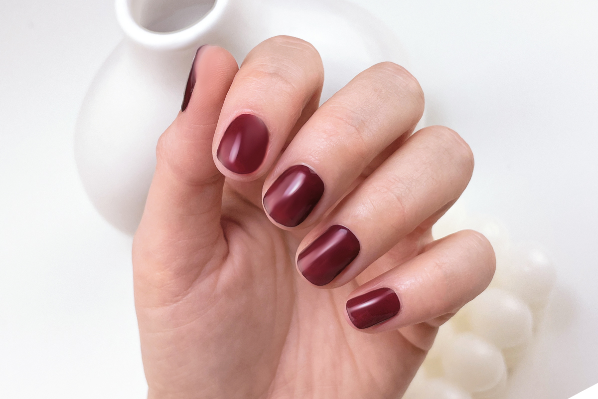 Jolifin LAVENI UV Gel-Wraps - wine red sorgen für perfekt manikürte Nägel, mit nur 3 Steps erstellt, bis zu 14 Tagen Halt und dabei noch besonders schonend! Nägel vorbereiten, Wrap-Größe wählen, aufkleben und Überschuss kürzen, 60 Sekunden aushärten – fertig!