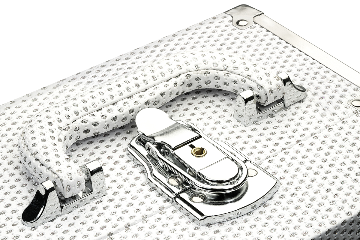 Jolifin Mobiler Kosmetik Koffer mini - white Glitter für den praktischen Transport Ihrer Naildesign-Utensilien