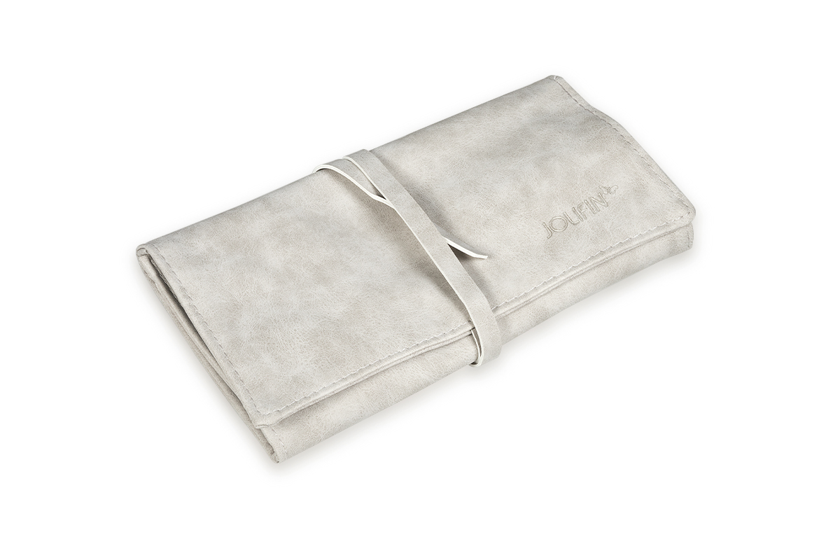Jolifin Pinseltasche - Lederoptik grau für die praktische und elegante Aufbewahrung in Ihrem Nagelstudio und unterwegs