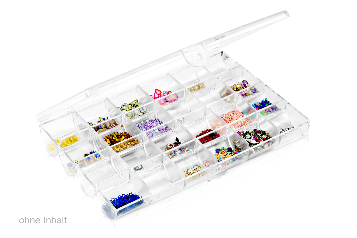 In der praktischen Sortierbox finden Overlays, Strass & Co. übersichtlich Platz.
