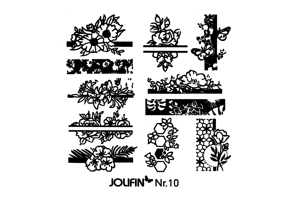 Jolifin Stamping-Schablone Nr. 10 für bezaubernde Motive auf Ihren Fingerspitzen